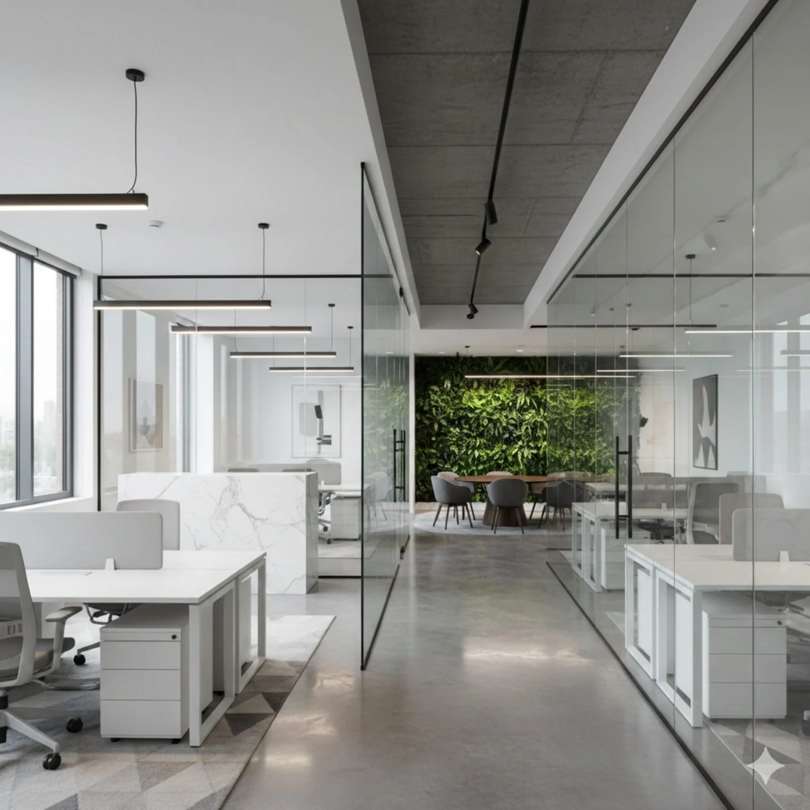 Custom frameless glass partitions designed for privacy, elegance, and seamless corporate interiors.